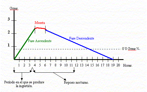 Aspectos sobre la Curva de Alcoholemia, Gráficos y breve explicación en la curva de alcoholemia, y efectos en las formas de ingestión de alcohol). Realizado y enviado a la web de coet por;